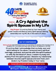 DAY 27: A CRY FOR MERCY AGAINST SPIRIT SPOUSE IN MY LIFE